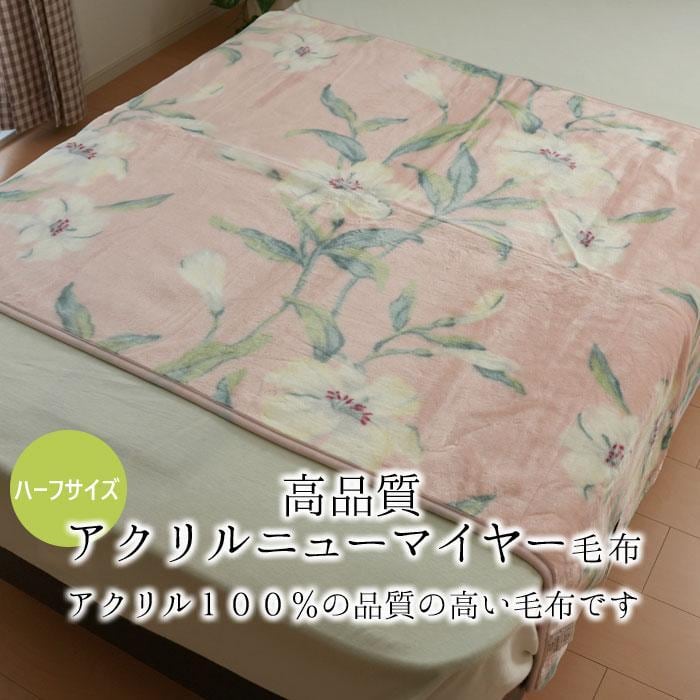 ユリ柄 毛布 アクリルニューマイヤー毛布 ハーフサイズ 140×100cm アクリル毛布 1枚もの あったか毛布 柔らか毛布 国産 やわらかい 軽い 日本製 ロマンス小杉 ひざ掛け 6630-8860