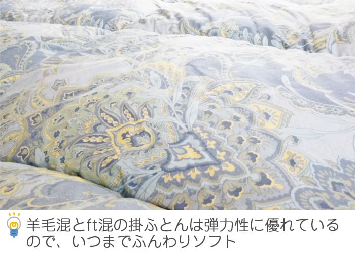 羊毛掛布団にはft繊維混なので、しなやかで独特のふんわり感が特長です。