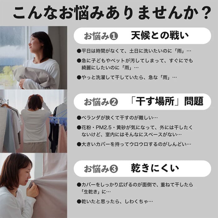 「お洗濯のたびに、大きくて重いカバーを干すのが大変…」