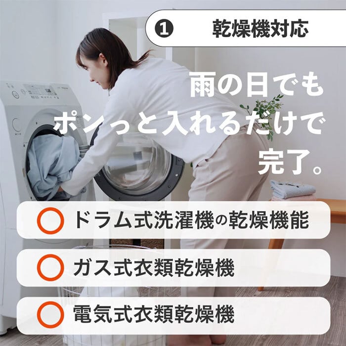 最大の特徴は、乾燥機にそのままかけられること。