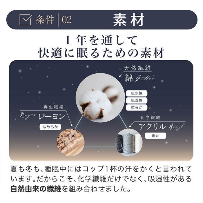 ・寝汗対策に吸湿性の高い自然由来の繊維を採用
