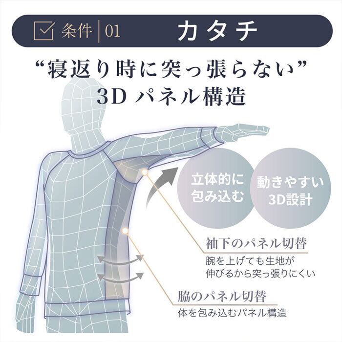 リカバリー効果に加え、睡眠環境を整える4つの条件を揃えた機能性パジャマです。