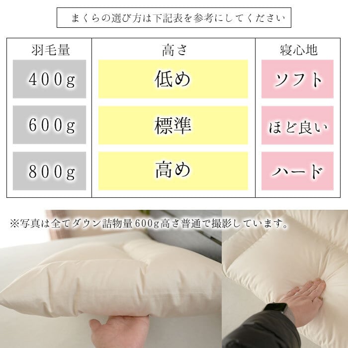 ●品名:ダウン枕(ダウン詰物量800g:高さ・高め 寝心地・ハード)エフィットプラス