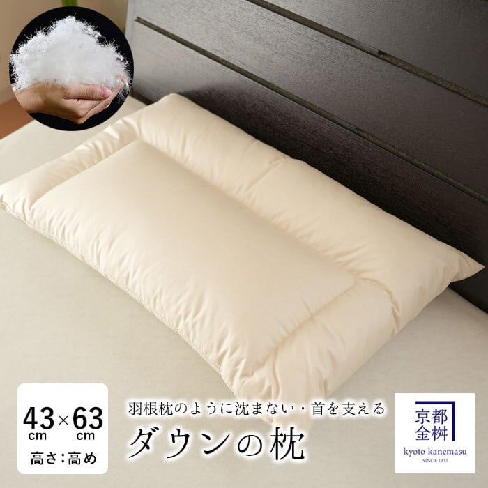 京都金桝 ダウンの枕 43×63cm 【羽毛詰物量800g:高め ハード】