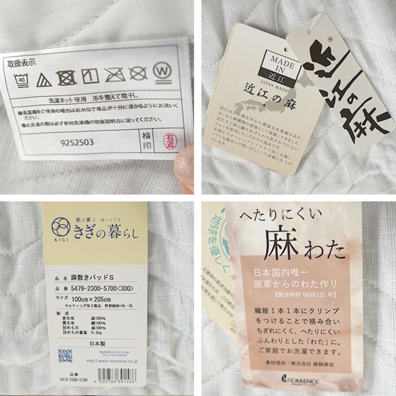 【ロマンス小杉 麻敷きパッド 表生地は近江の麻 日本製】