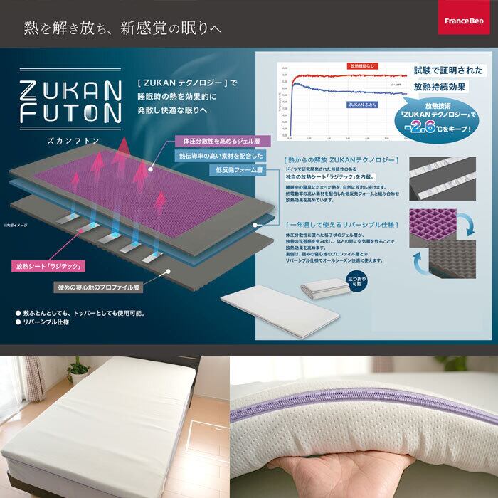 フランスベッド ズカンフトン マットレス トッパー オーバーレイ 冷感 涼感 ひんやり 冷たい 通気性 放熱 ZUKAN FUTON ズカンふとん 16便 360664170
