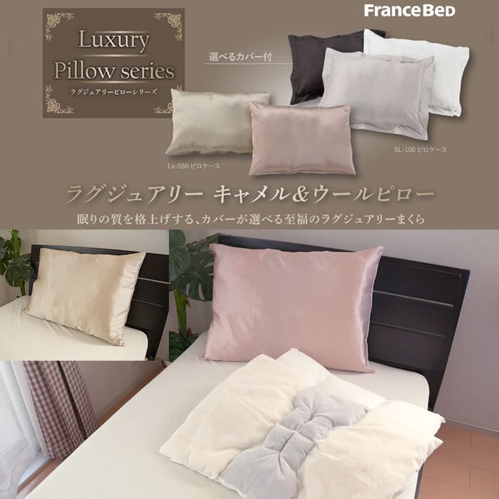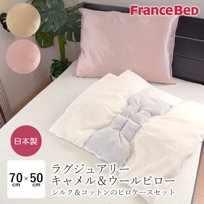 フランスベッド ラグジュアリー キャメル&ウールピロー ピローケース付き シルク枕カバー ゴールド ピンク 枕 まくら 日本製 12便 3606661