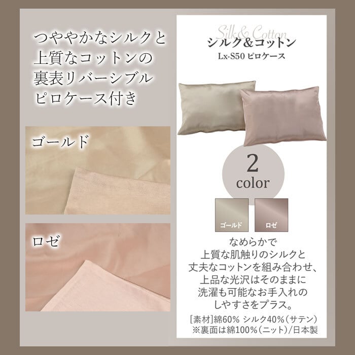 シルク&コットン(x-S50 ピロケース)専用枕カバー付き