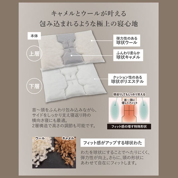 ●品名:フランスベッド ラグジュアリー キャメル&ウールピロー(ピローケース付き)