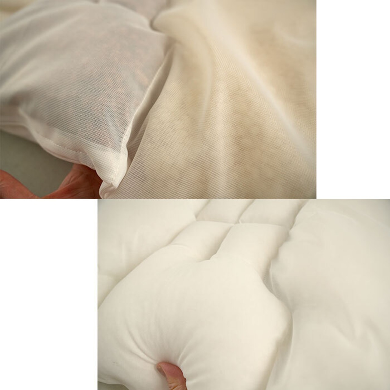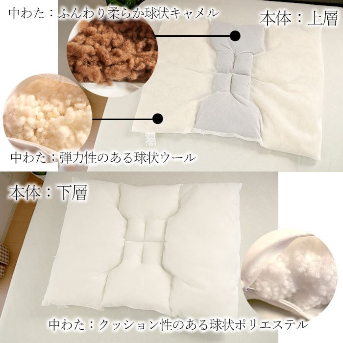 詰物:上層:(中央)キャメル100%、※球状わた(左右)ウール100% ※球状わた