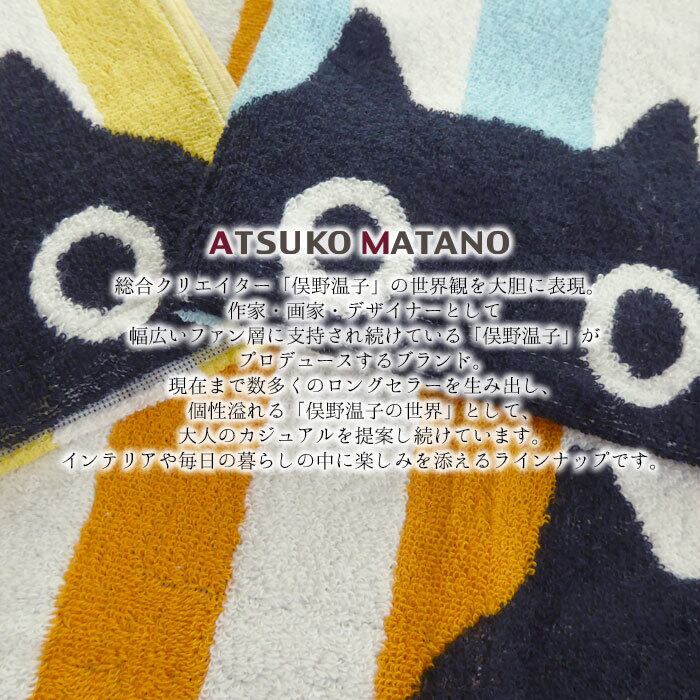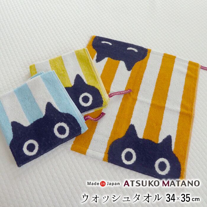 西川 MATANO ATSUKO ウォッシュタオル 34×35cm 日本製 MEME ストライプ ループタオル ハンドタオル 猫 黒ネコ 俣野温子 またのあつこ TT34103604 N便3