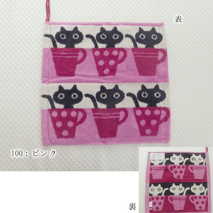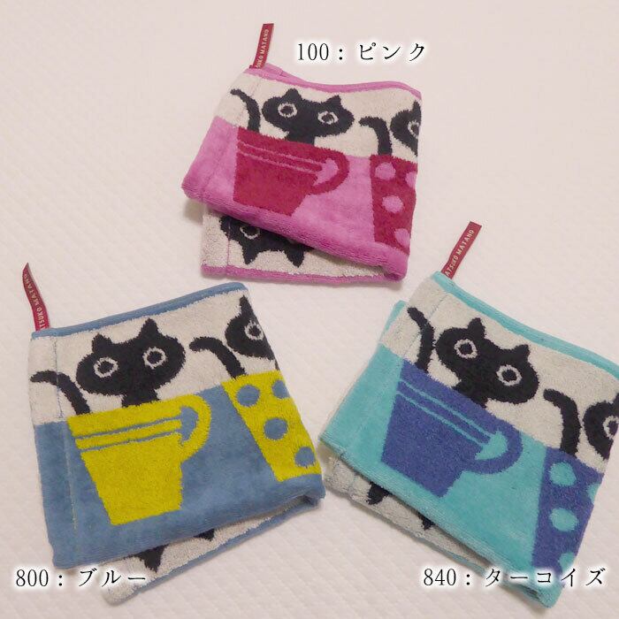 日本製 西川 ふわふわ無撚糸使用 ウォッシュタオル 34×35cm ハンドタオル ループタオル 黒猫 MEME カップ モチーフ 今治タオル カラフル またのあつこ MATANO ATSUKO ボリューム N便5 TT33104641