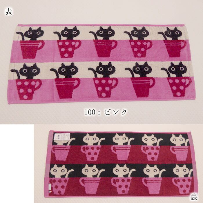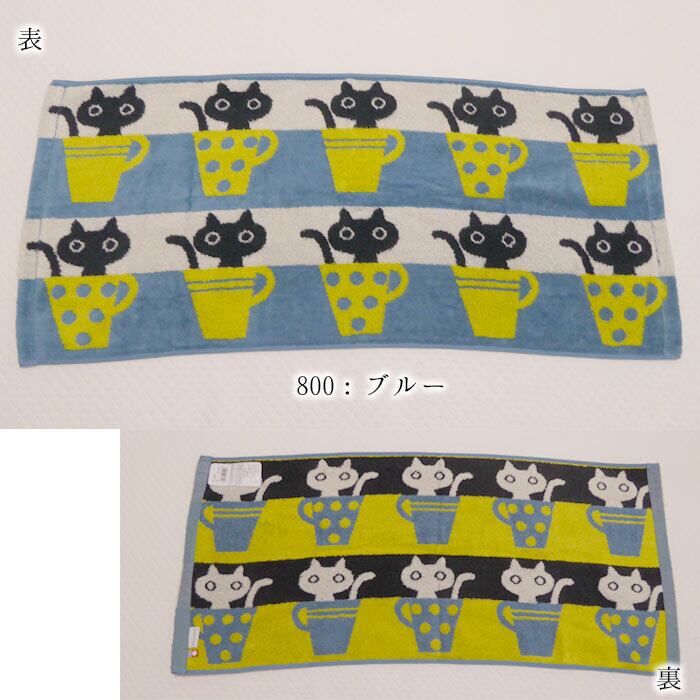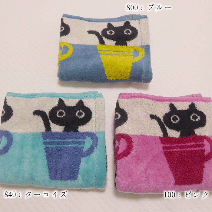 日本製 西川 ふわふわ無撚糸使用 フェイスタオル 34×75cm 長方形タオル 黒猫 MEME カップ モチーフ 今治タオル カラフル またのあつこ MATANO ATSUKO ボリューム N便2 TT23184641
