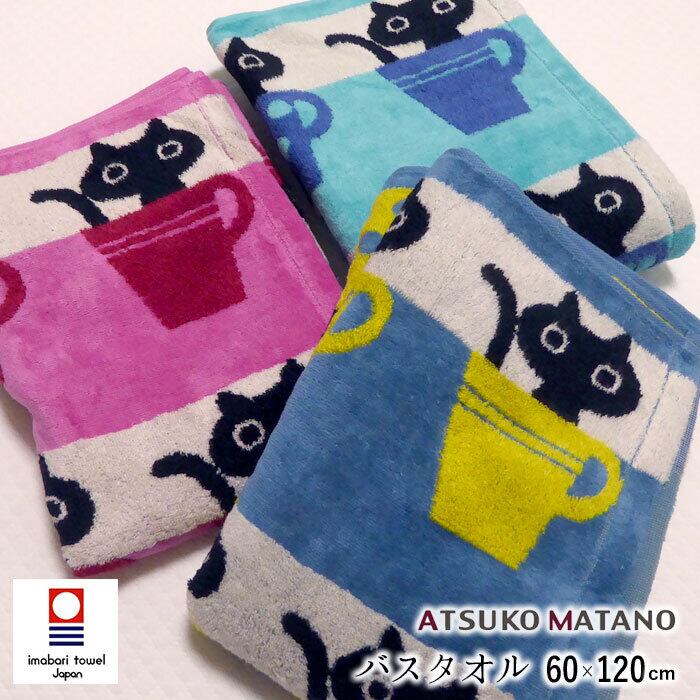 日本製 西川 ふわふわ無撚糸使用 バスタオル 60×120cm 長方形タオル 黒猫 MEME カップ モチーフ 今治タオル カラフル またのあつこ MATANO ATSUKO ボリューム 6便 TT13424641