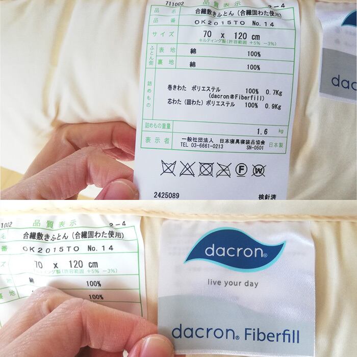 日本製 ベビー 敷き布団 70×120cm お昼寝 しっかり厚め ボリュームたっぷり インビスタ社 ダクロン Fiberfill 新二層キルト 保育園 敷布団 No.14