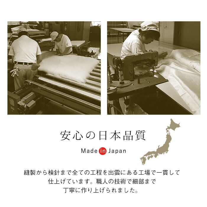 実現しました。高密度生地は中綿(なかわた)の吹き出しを防ぐので
