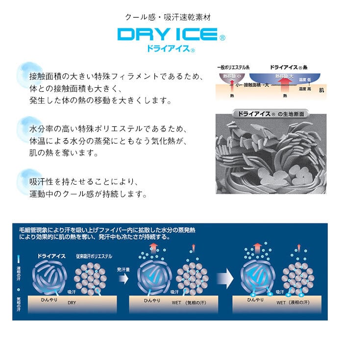 肌に触れる面には、冷感素材の東洋紡生地【ドライアイス】を使用しており、