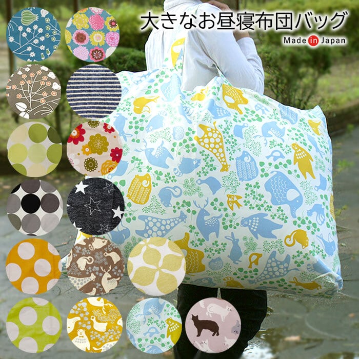 綿わたお昼寝布団上下セットが入るサイズのバッグです。
