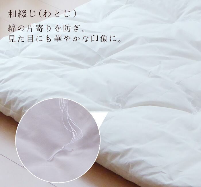 和綴じ(わとじ)で仕上げ、中わたが片寄るのを防ぎ、見た目にも華やかな印象に。