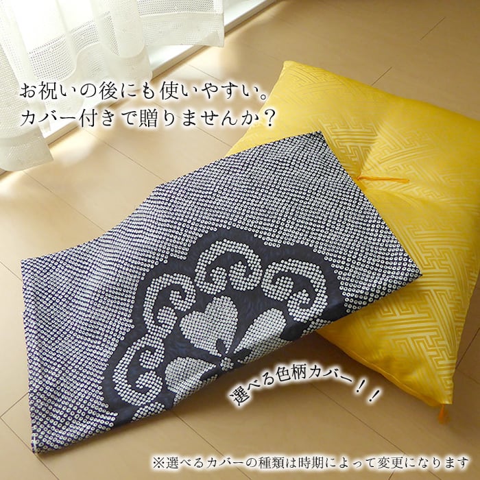 御祝のあとも長く使って欲しいから 祝寿座布団 銘仙判55×59cm カバーつき 紗綾形座布団(さや形) 黄色 ISI0001T