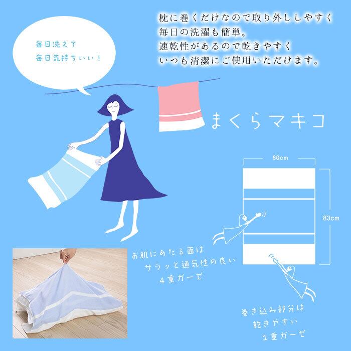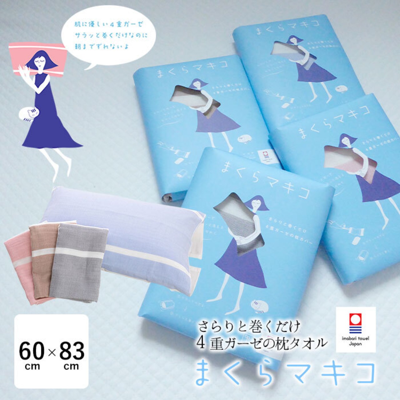 まくらマキコ 60×83cm まくらまきこ 4重ガーゼ 日本製 今治 まくらカバー 枕カバー ピローケース シンプル ナチュラル かわいい ガーゼタオル 今治タオル M便2 YJN0015T
