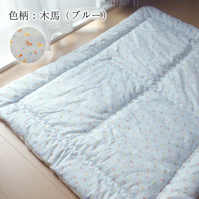 ママスタッフが選んだ!可愛い色柄♪側生地は日本製のコットン100%生地、昔ながらの綿ふとんでつくったお昼寝組み布団です。
