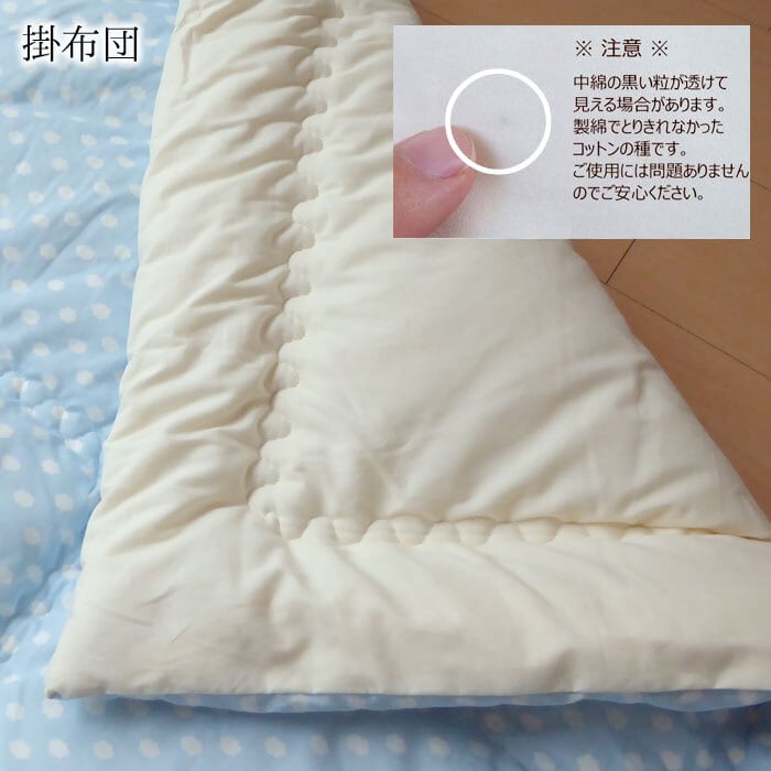 ・木綿わた特有のにおいがあります。天日に干すとにおいは薄くなります。