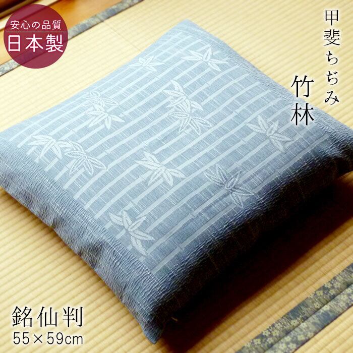 座布団カバー 銘仙判 夏用 甲斐ちぢみ 日本製 竹林 55×59cm 麻混 撥水加工 来客用 ちじみ座布団 M便3 ASZ0008T