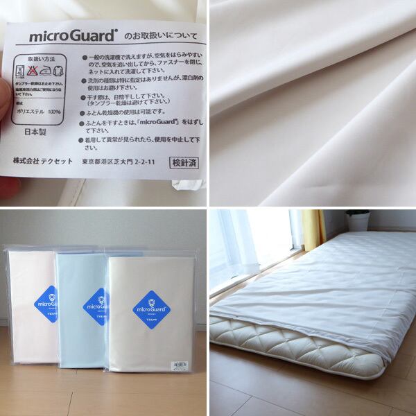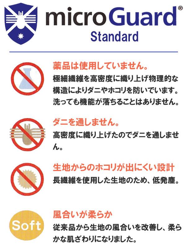 ミクロガードスタンダードの生地は、極細繊維を高密度に織っているためダニやハウスダストを通しません。