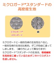 ミクロガードスタンダードの生地は、極細繊維を高密度に織っているためダニやハウスダストを通しません。