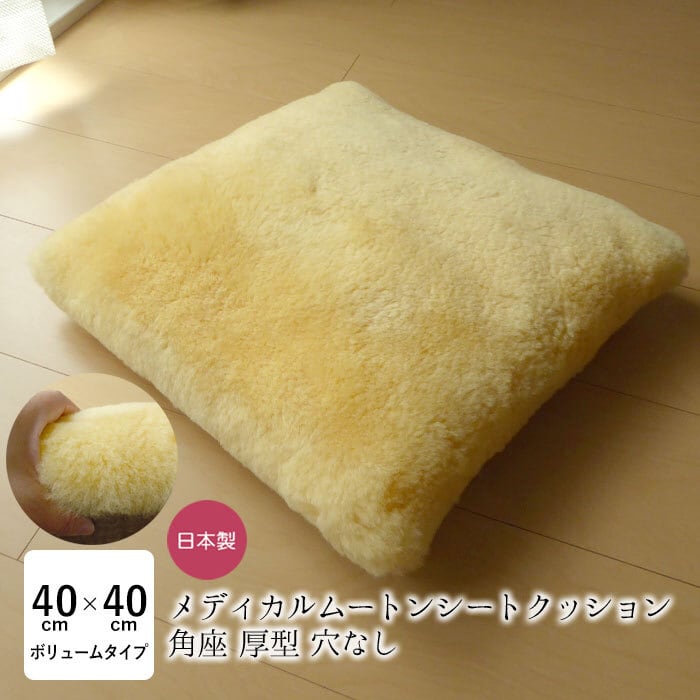 洗える ムートン座布団 メディカルムートン(医療・介護用)角座 穴なし ざぶとん 厚型 ムートン 日本製 厚め 床ずれ予防 体圧分散 舛田 マスダ NKP0043T