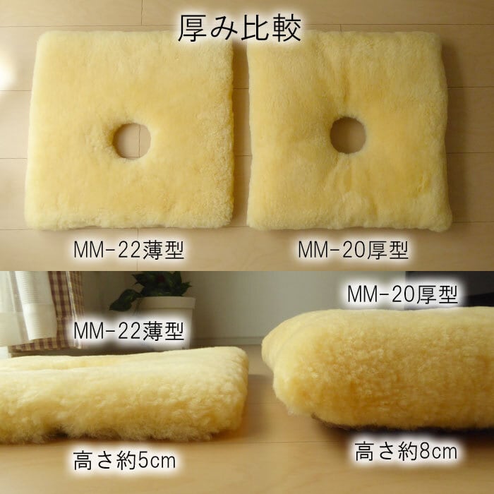 洗える ムートン座布団 穴あき 座布団 メディカルムートン(医療・介護用)角座 ざぶとん 厚型 穴空き ムートン ドーナツクッション MM-20 日本製 厚め 床ずれ予防 体圧分散 舛田 マスダ