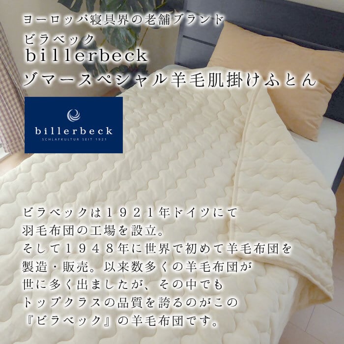 ビラベック ゾマースペシャル 肌掛けふとん ウール肌掛け布団 シングル 150×210cm 羊毛肌掛けふとん ウールケット 肌布団 肌ふとん ロイマリンドウール エコテックス認証 billerbeck 28-5