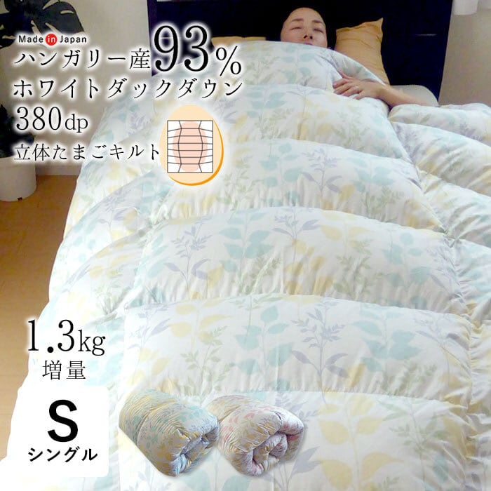 立体たまごキルト 羽毛布団 シングルロング 150×210 日本製 増量1.3kg ハンガリー産 ホワイトダックダウン93% 軽量生地 立体キルト加工 KKM0020T