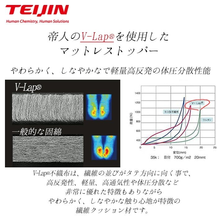 日本製 V-LAP マットレストッパー シングル 95×205cm オーバーレイ ベットパット ベッドパット 体圧分散 テイジン 帝人 VLAP 10MT2360-S