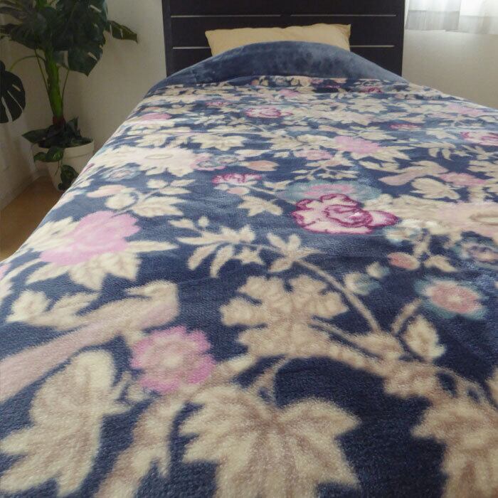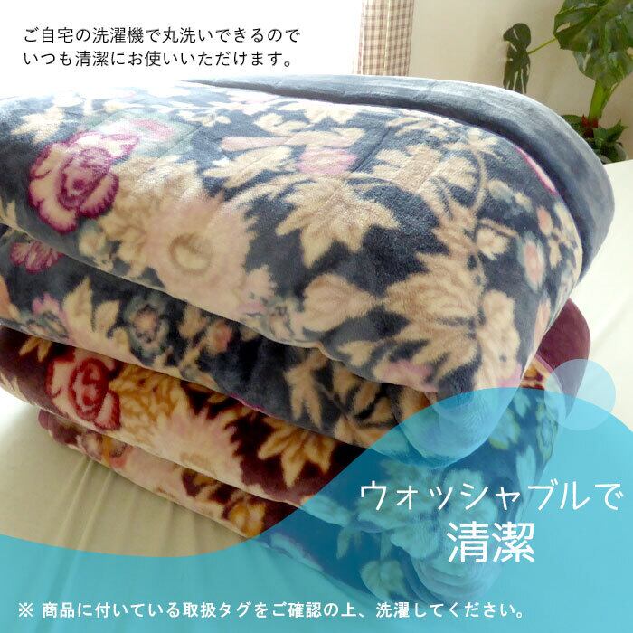 毛布 あったか 昭和西川 わた入りアクリル合わせ毛布 シングル 140×200cm 吸湿発熱 ボリューム 厚手 極厚 日本製 マイヤー毛布 2枚合わせ アクリル毛布 衿付き毛布 衿ふっくら 合わせ毛布 やわらか 寒さ対策 花柄 エレガント セール 22305-19513