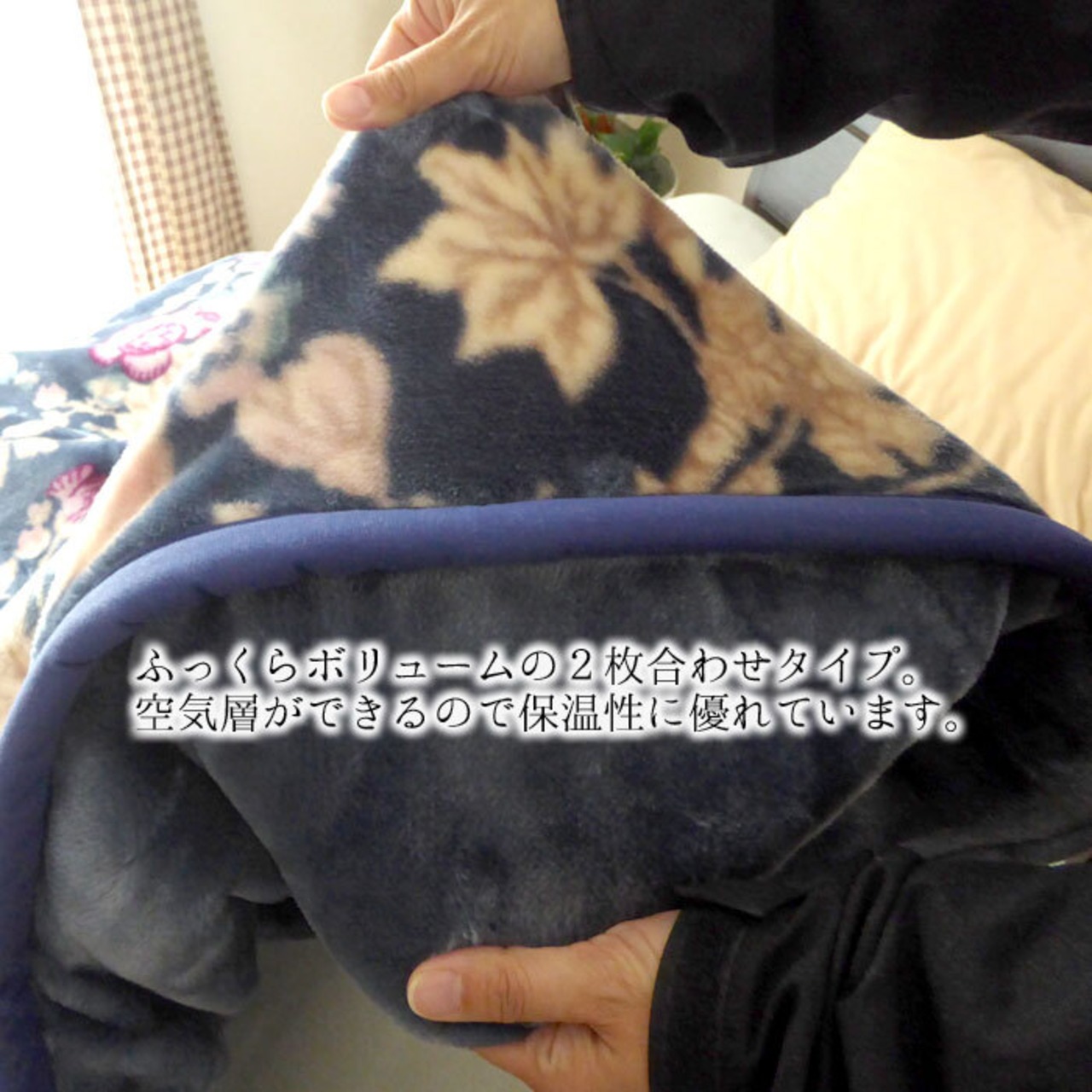 2枚の毛布を合せた2枚合わせ構造で、